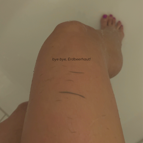 Begebe dich aus dem Wasser und peele Deine Haut kräftig mit Auf- und Abwärtsbewegungen so lange, bis Du siehst, dass die abgestorbenen Hautzellen abperlen. Wiederhole den Vorgang an jeder Körperpartie. Indem du etwas Druck ausübst, erzielst Du ein besseres Ergebnis. (Rötungen sind normal)